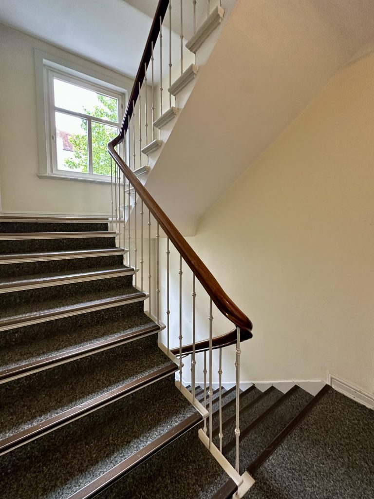 Die Wohnung verfügt über die baujahrestypischen Merkmale: Hohlkehlen, unter dem verlegten Laminat wahrscheinlich noch Dielen, zum Teil Holz-Kassettenfenster.