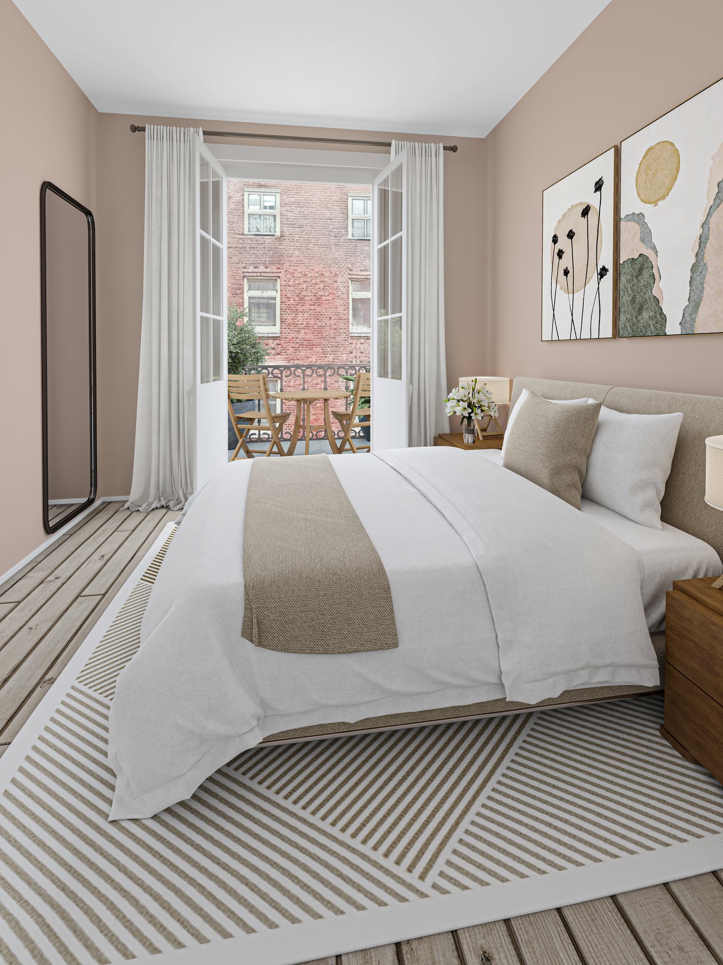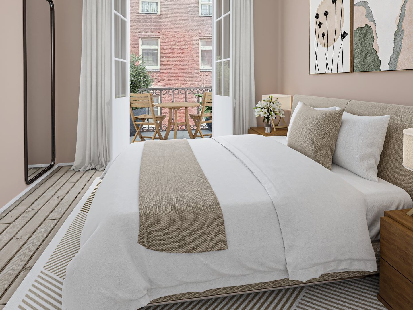 Das Schlafzimmer befindet sich neben dem Badezimmer und ist ebenfalls vom Flur aus zu erreichen und hat einen charmanten Süd- West - Balkon