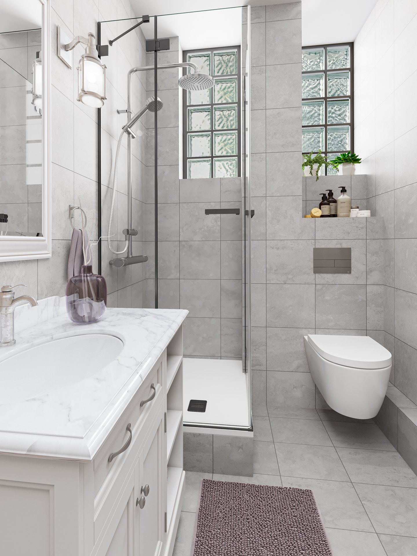 Das Tageslichtbad (Dusche) geht vom zentralen Flur ab.